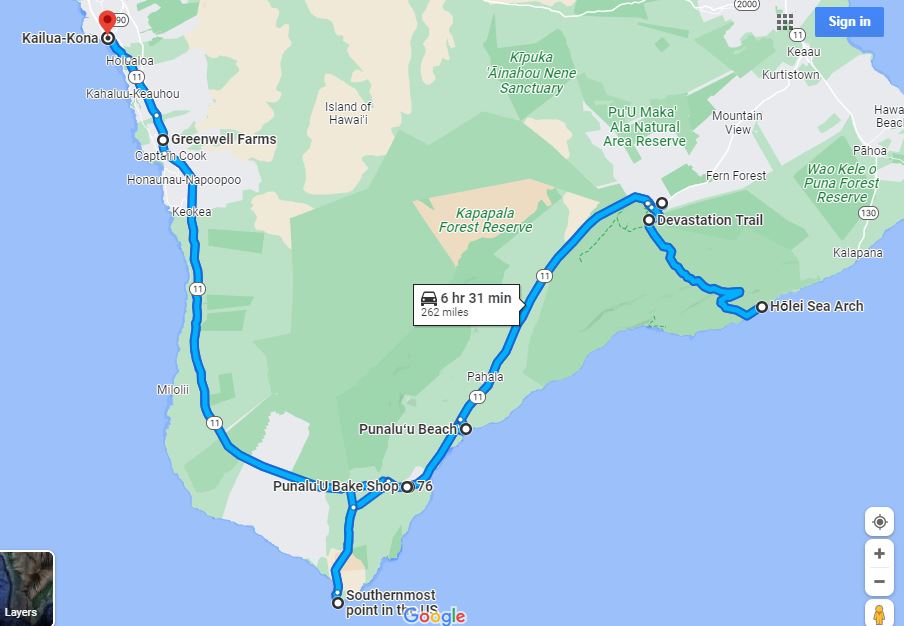 Punaluu Bake Shop 이 있는 동네인 Naalehu 에서 16마일 남쪽으로 떨어진 곳으로 향했다.