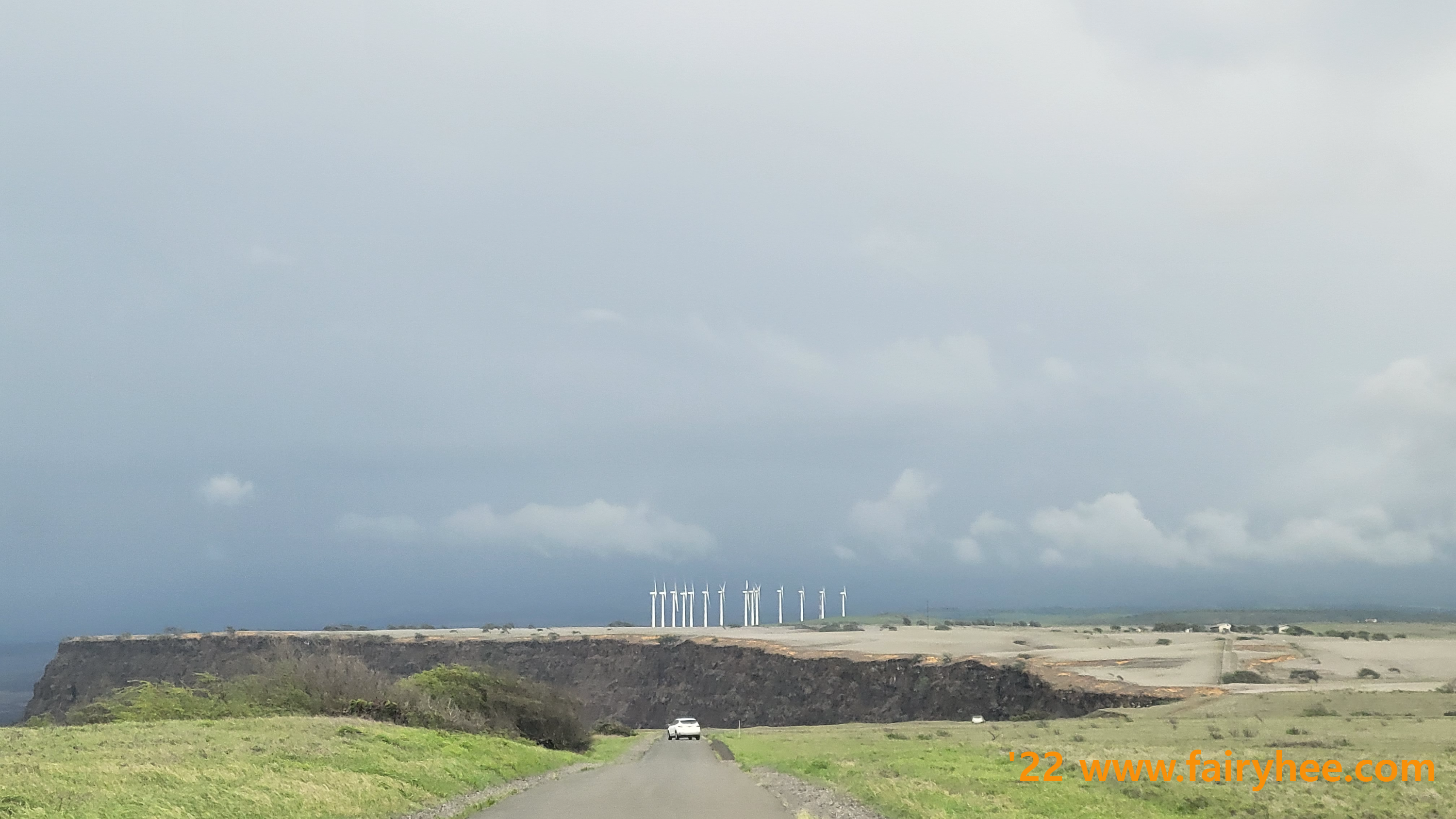 멀리 Pakini Nui Wind Farm 풍력발전소가 보인다.
