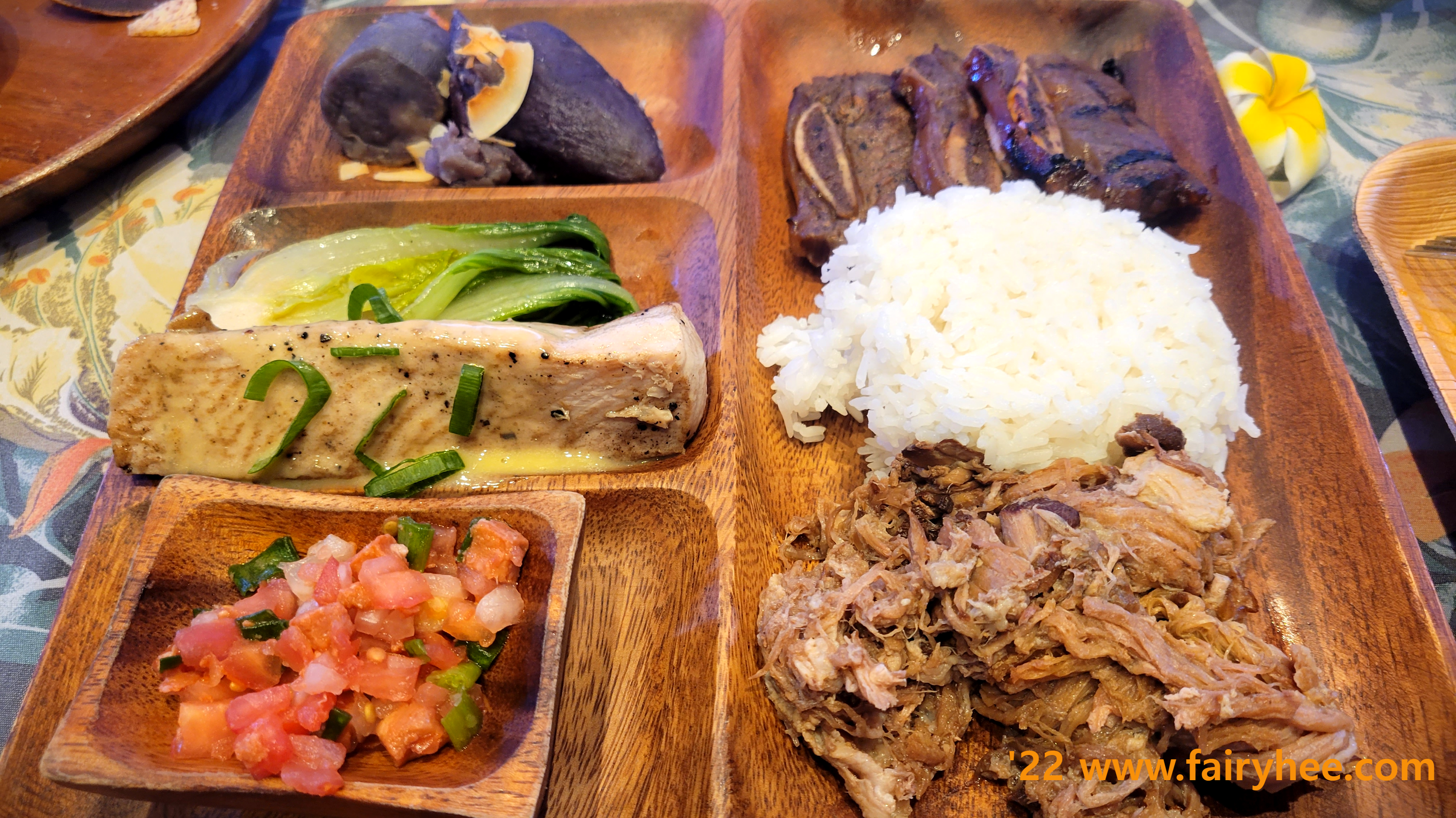 Kalua pig (돼지고기)는 너무 짜고 생선은 퍽퍽하고