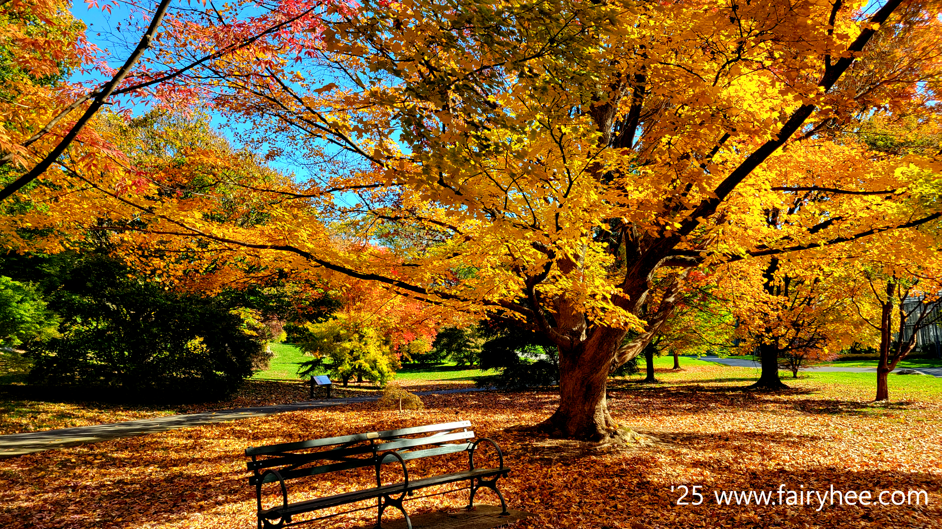 밖으로 나오니 단풍 든 나무가 마치 컬리플라워에 칠리 시즈닝을 뿌린 듯한 모습이다.
