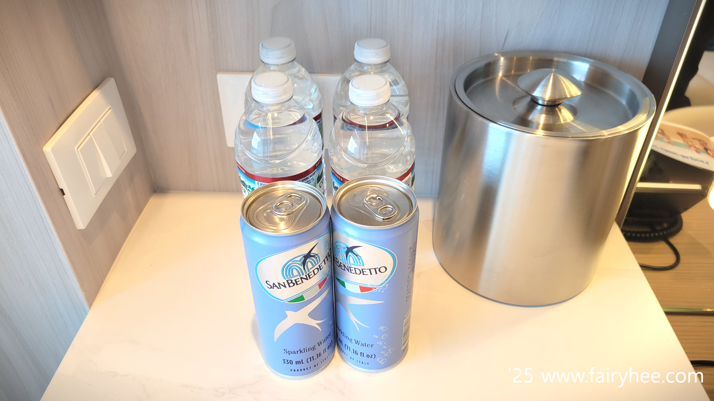 주문한 물이 배달되어 있길래 미니 냉장고에 넣어 차게 보관했다.