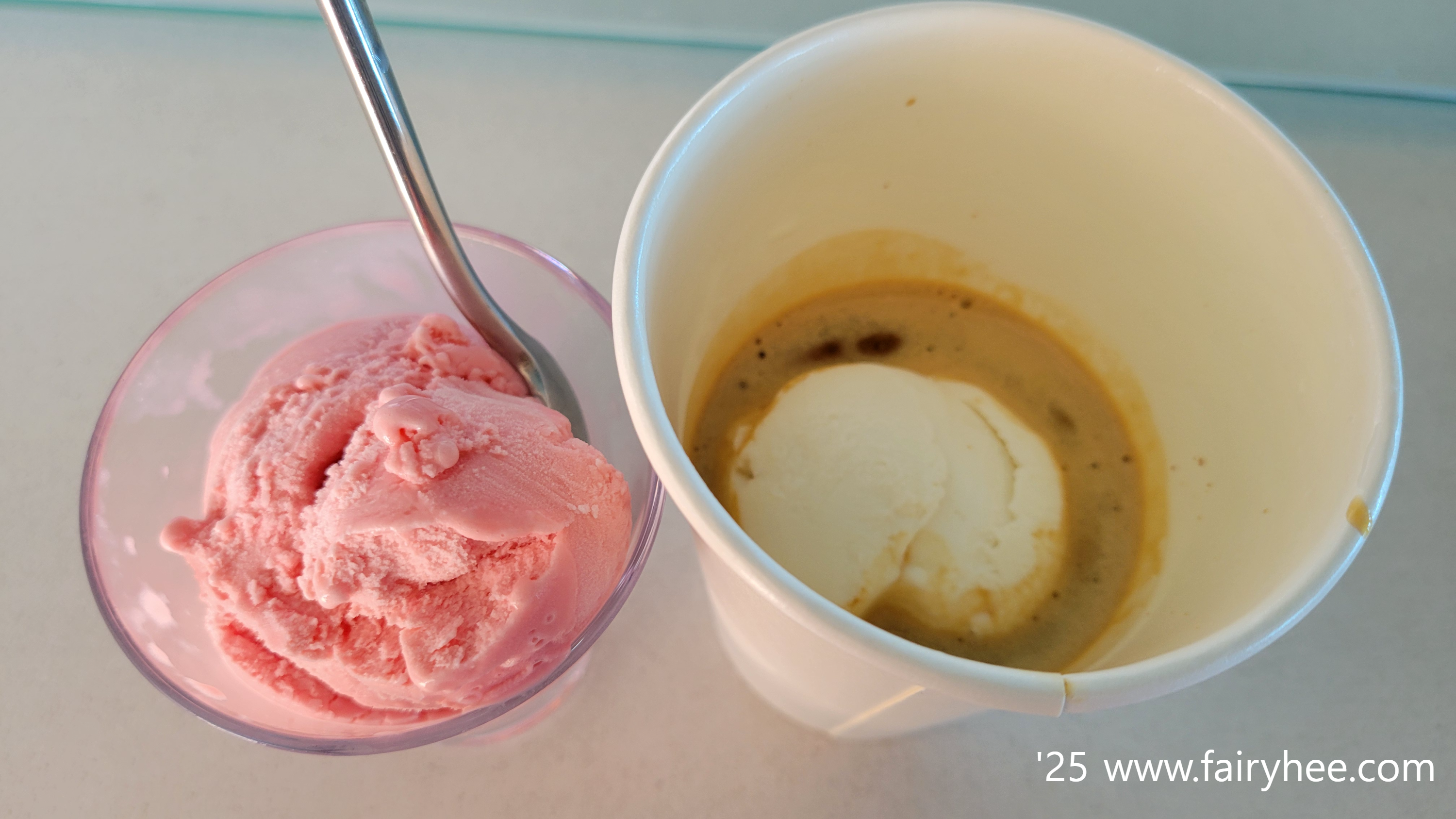 젤라또와 아포가토를 들고 방으로 돌아왔다.