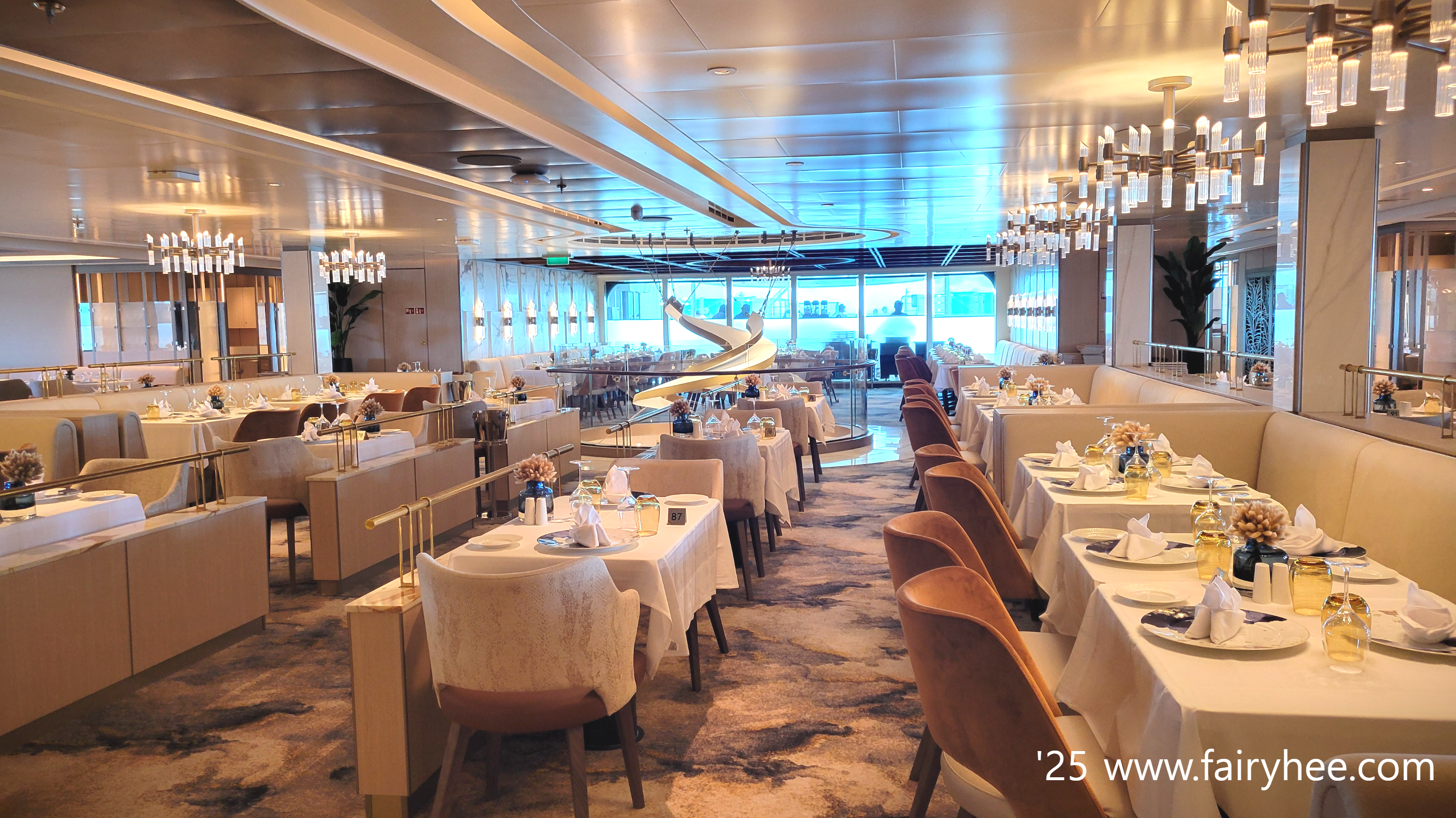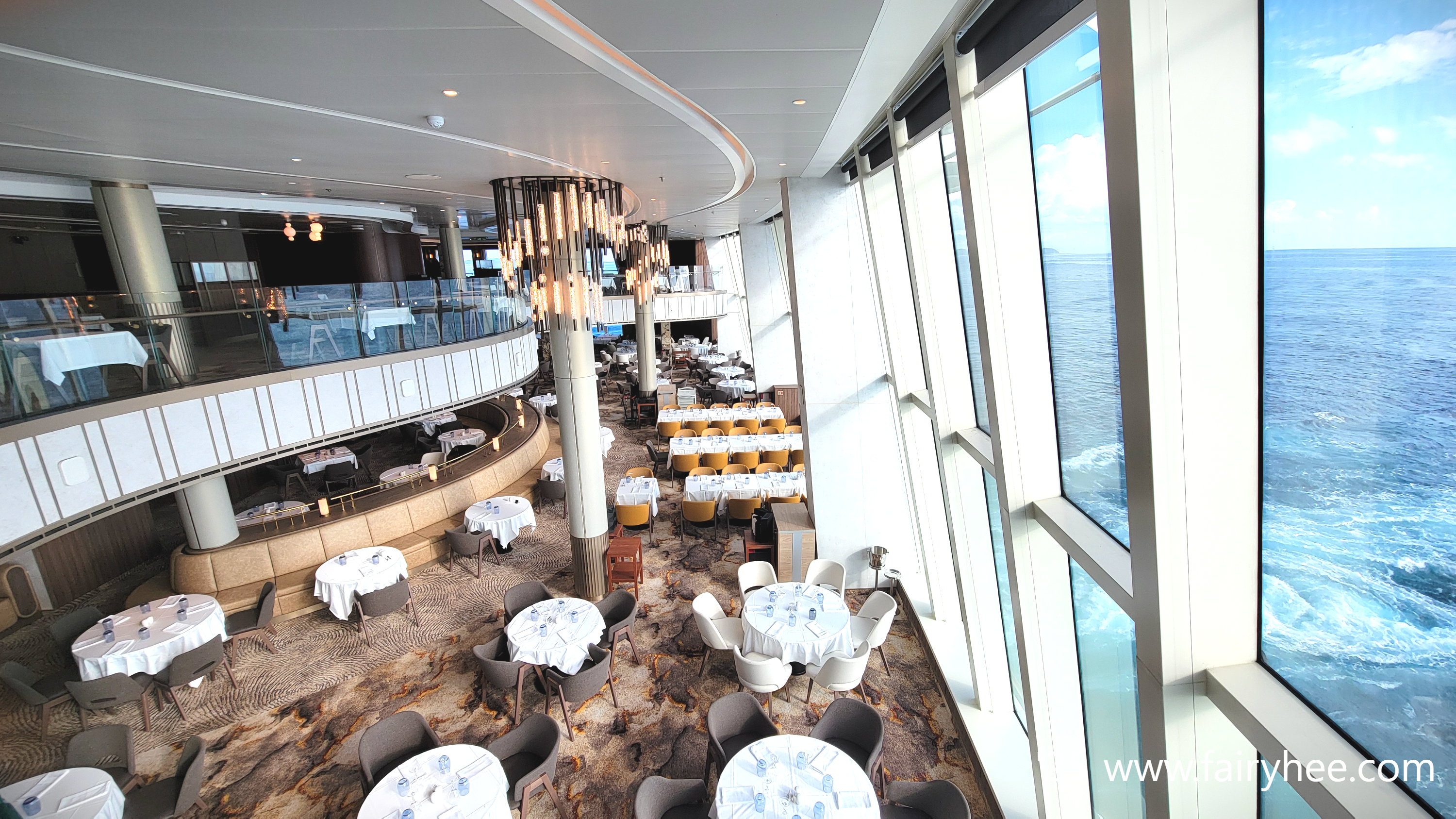 Star Princess 의 메인 다이닝룸은 7층의 Celestial 과 6층의 Aurora Dining Room 으로 구성되어 있다.