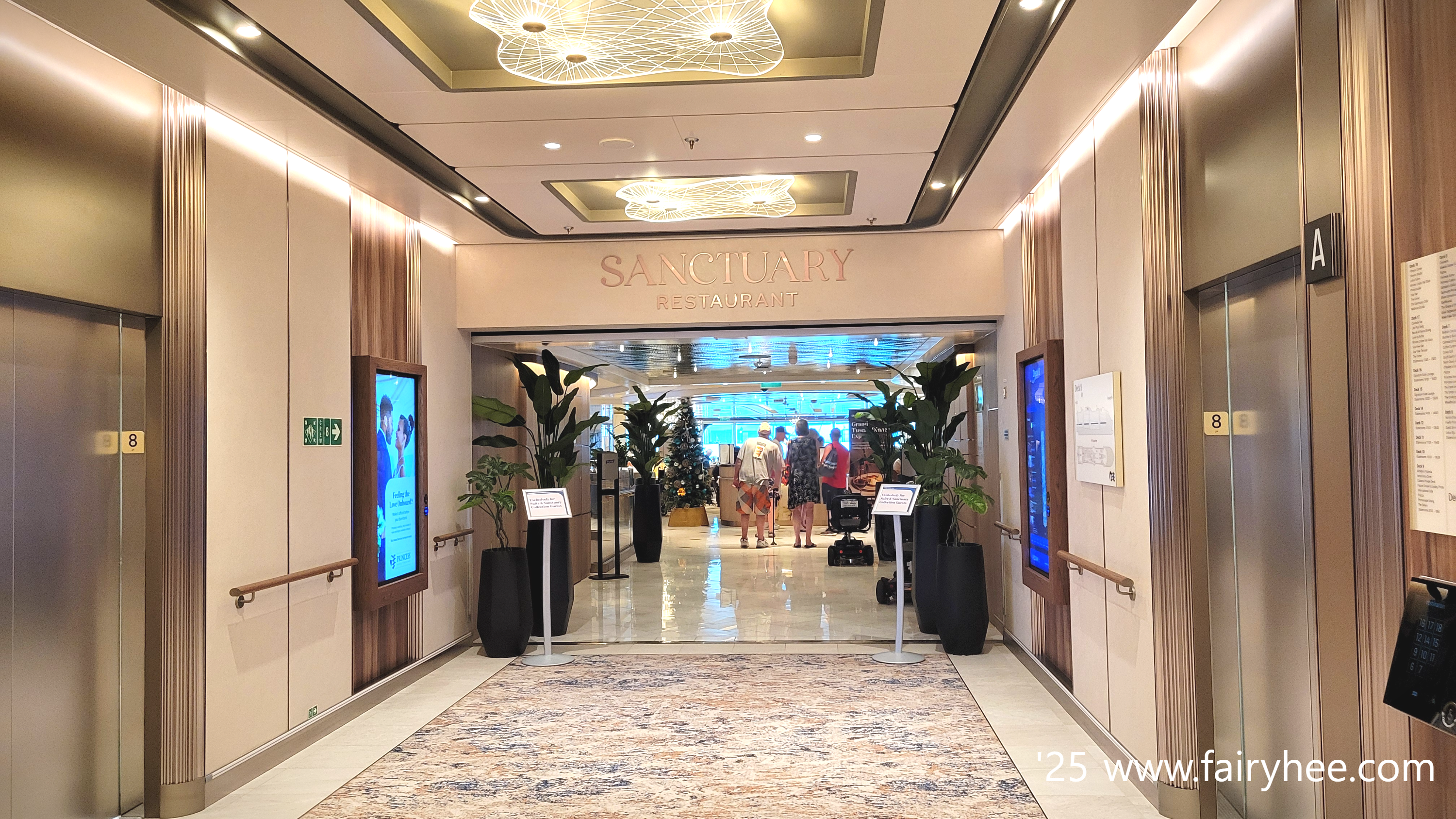 메인 다이닝룸에서 추가비용을 받는 메뉴도 생츄어리 레스토랑에서는 일반 메뉴에 포함되어 있다.