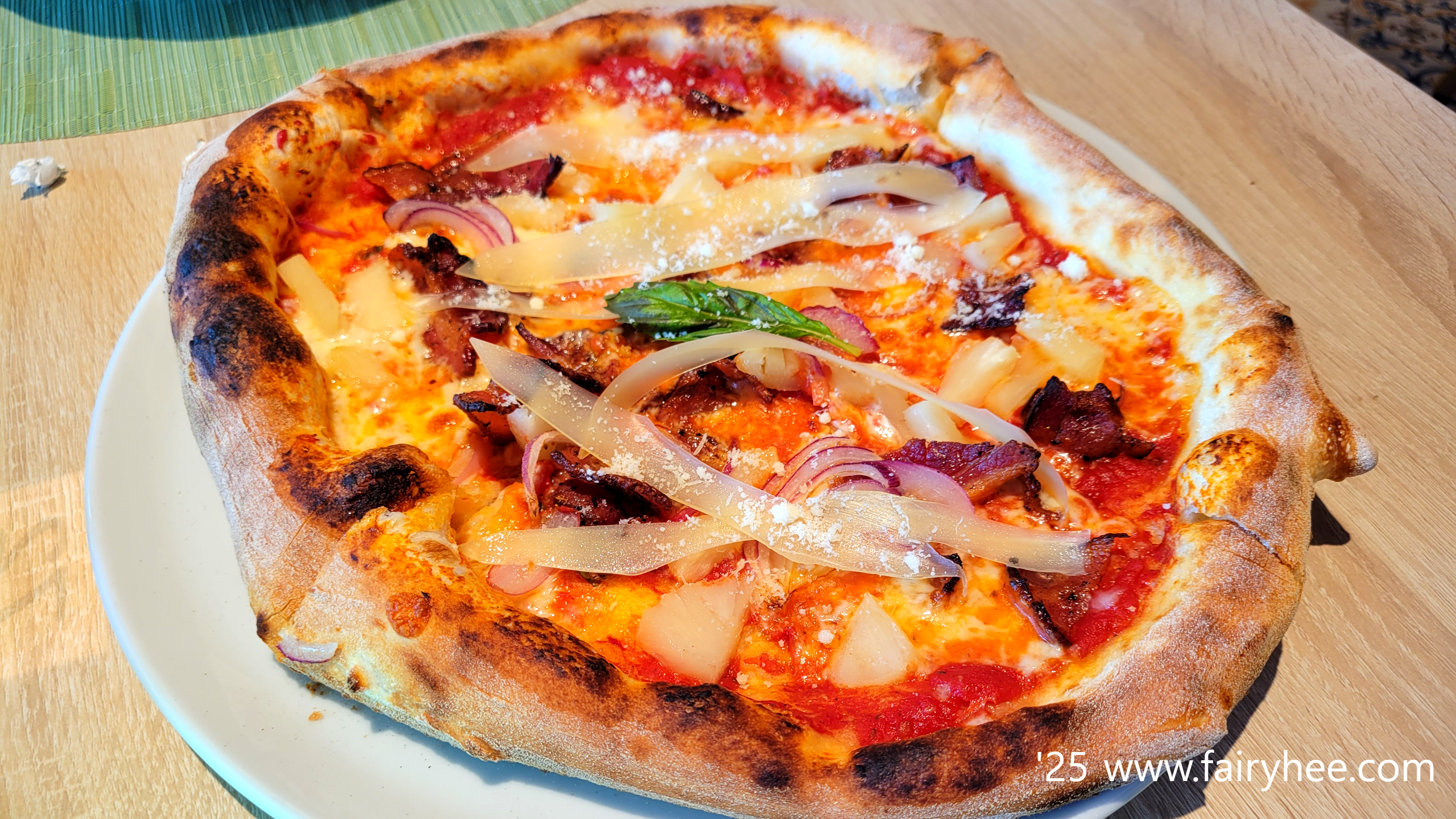 파인애플과 베이컨을 얹은 피자.