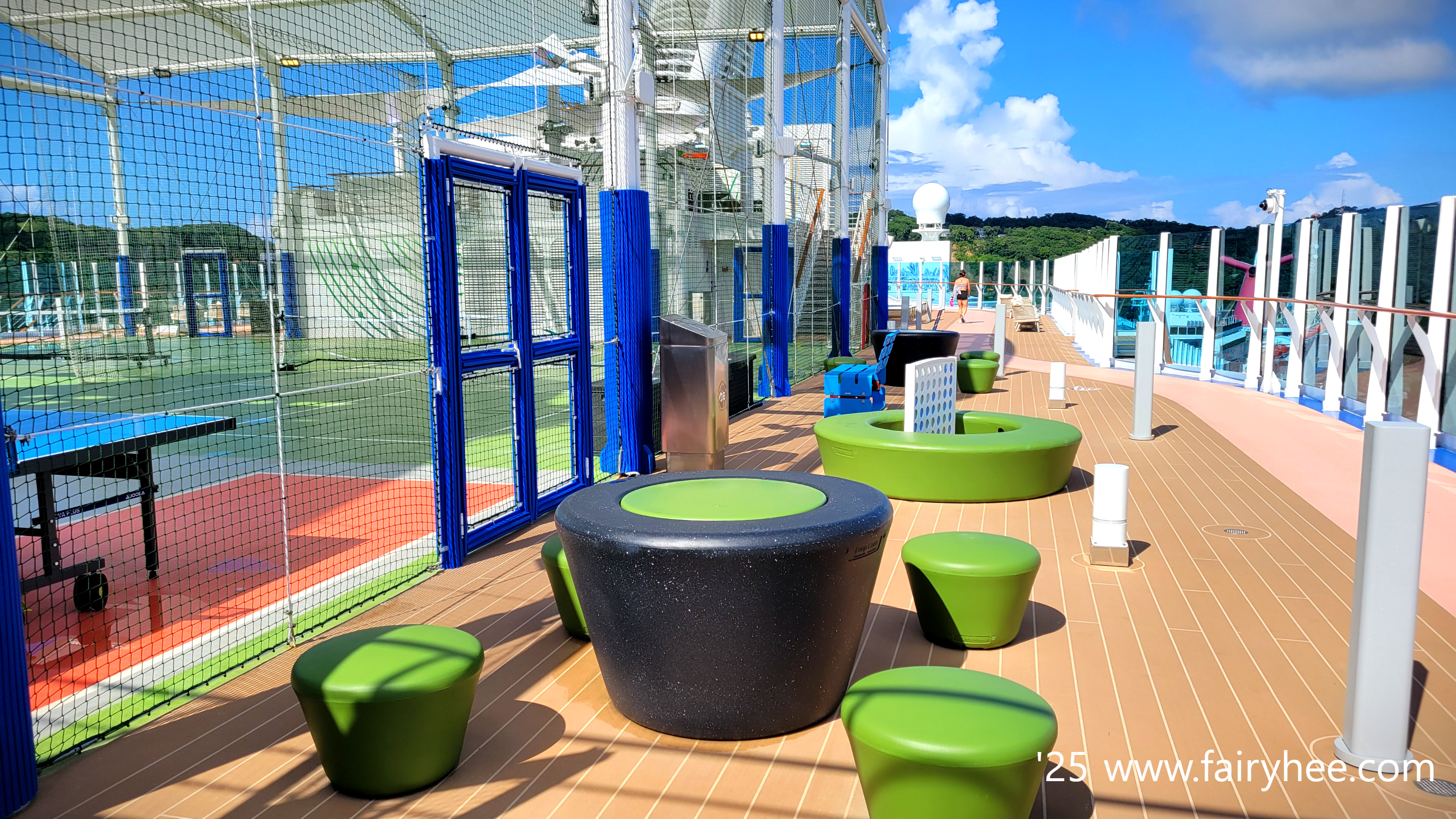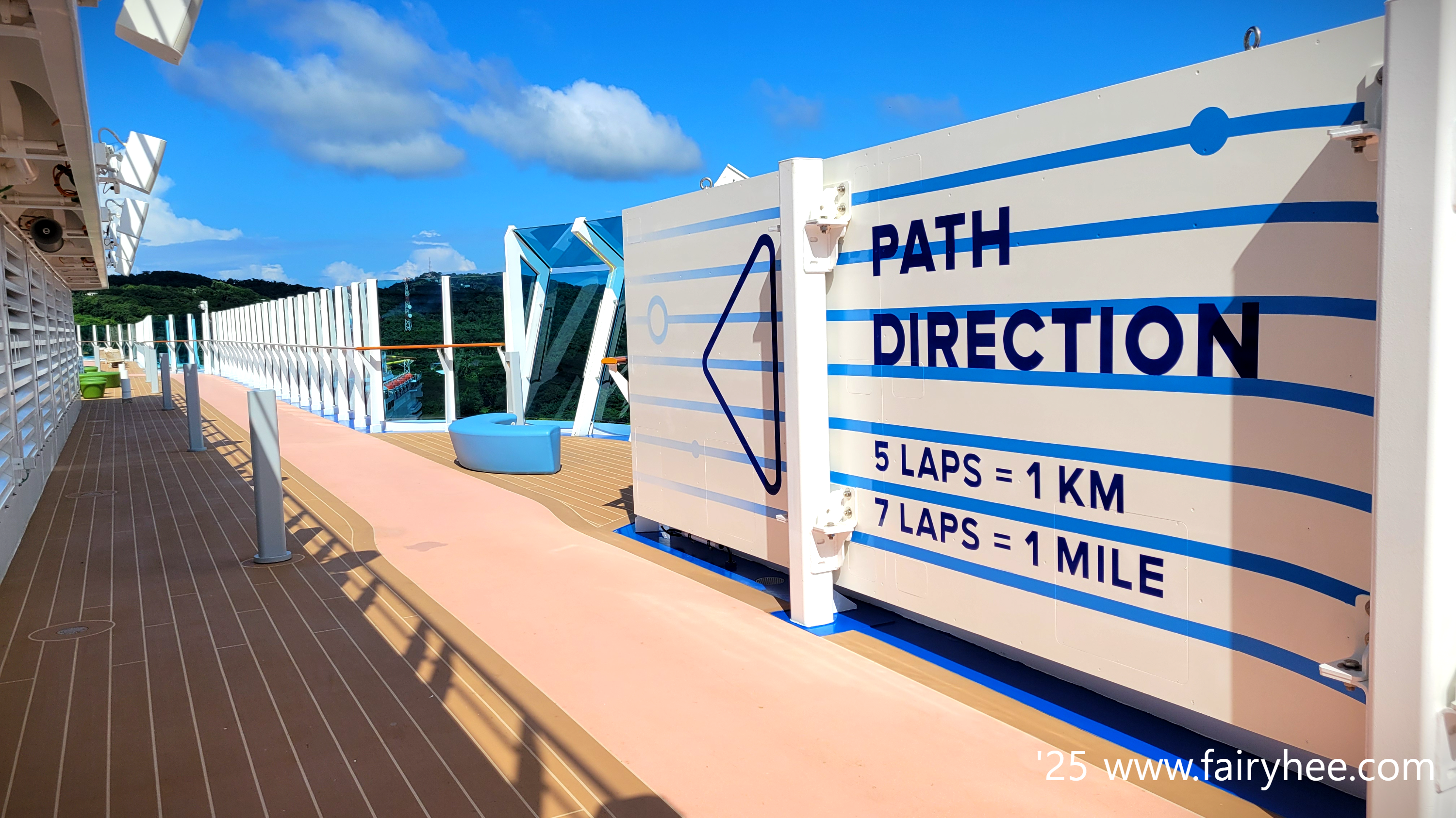 The Sphere Class Ship 은 7,8층의 야외덱을 사용할 수 없어서 19층에 조깅 트랙이 있다.
