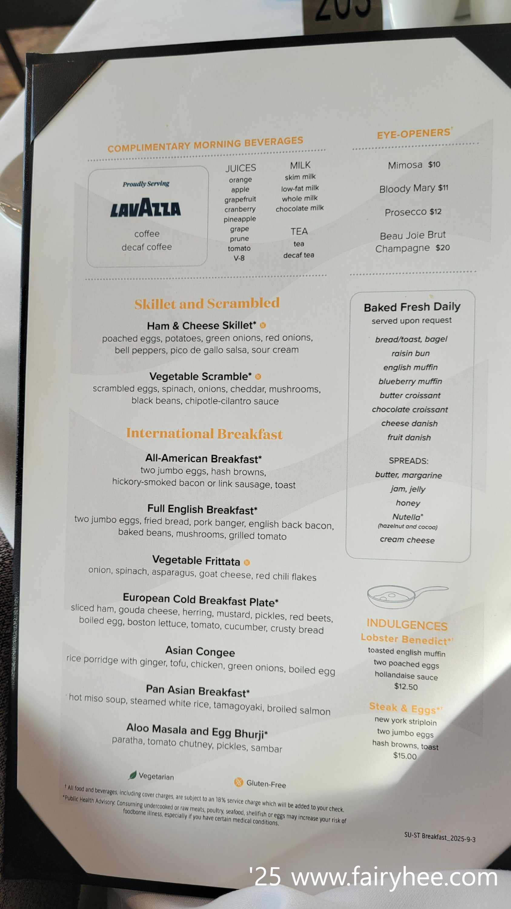 모처럼 Sea Day 이니 아침식사는 다이닝룸에서.
