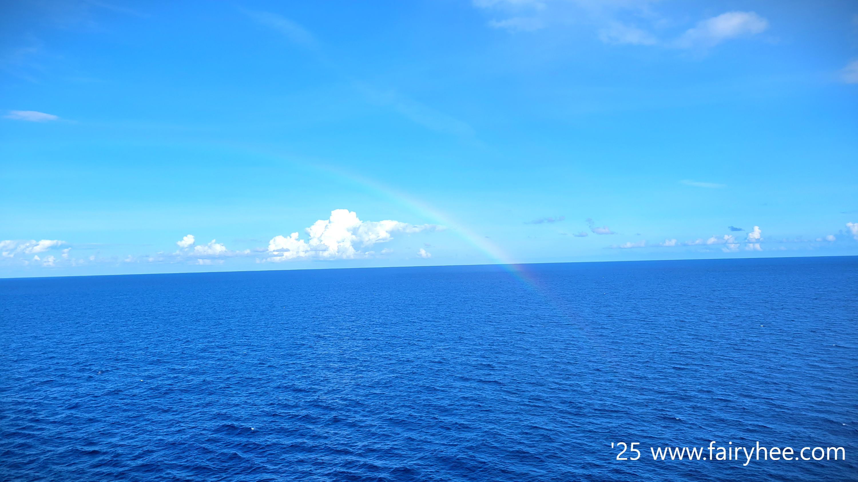 습관처럼 나간 발코니에서는 바다 위에 떠있는 무지개를 볼 수 있었다.