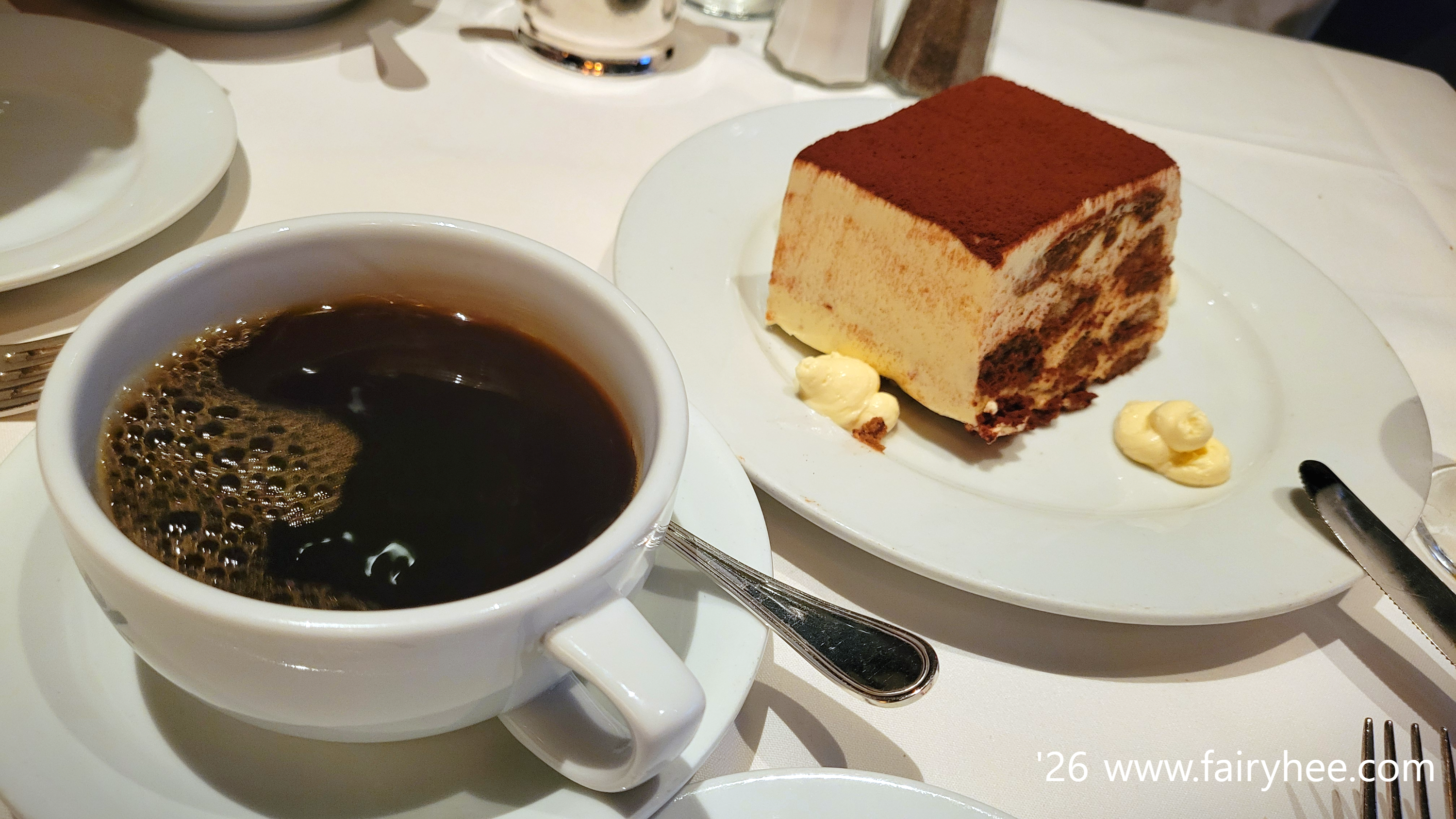 커피잔이 워낙 커다란 사발이라 티라미수가 작아 보이는데 절대 적은 양이 아니다.