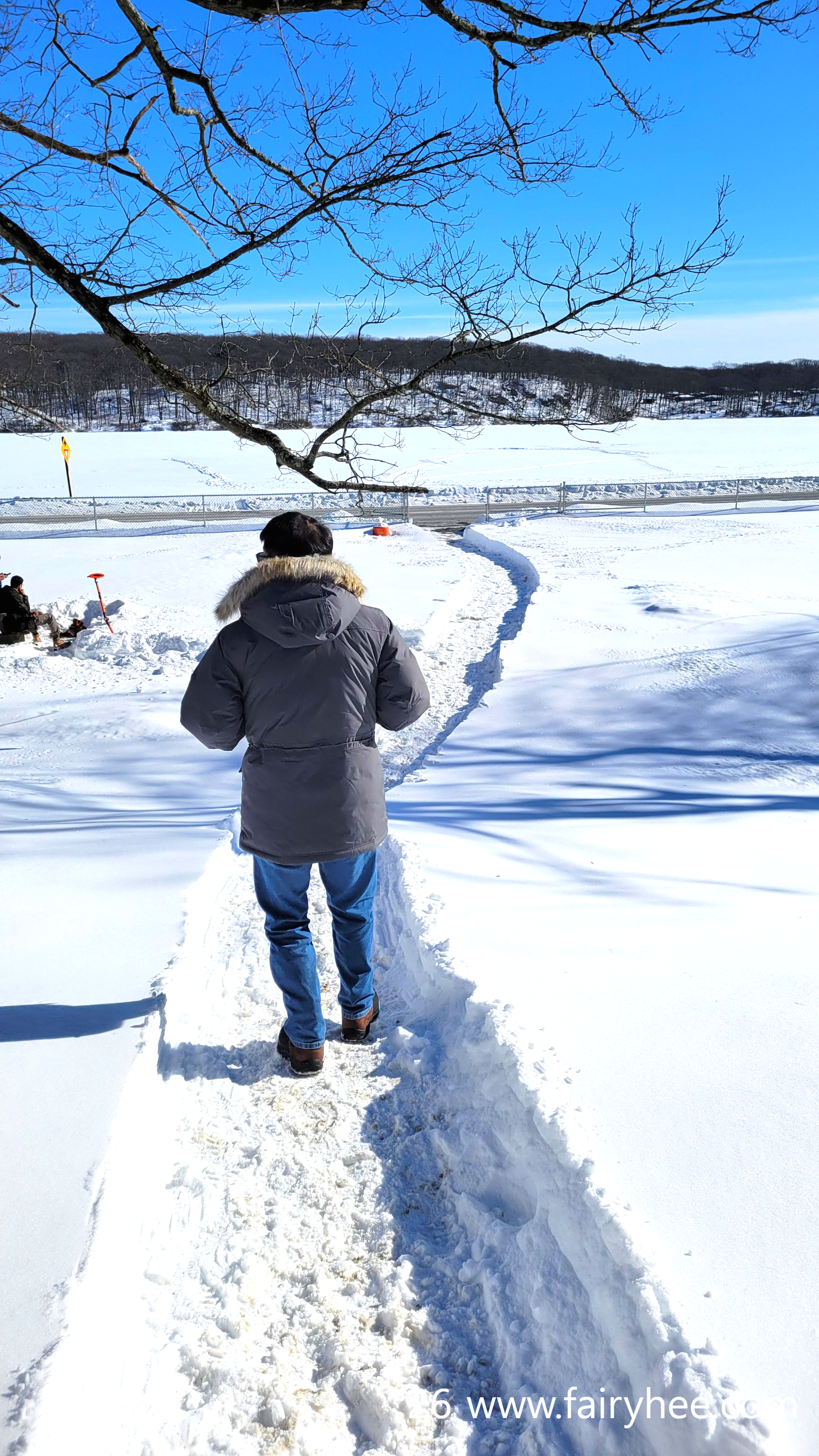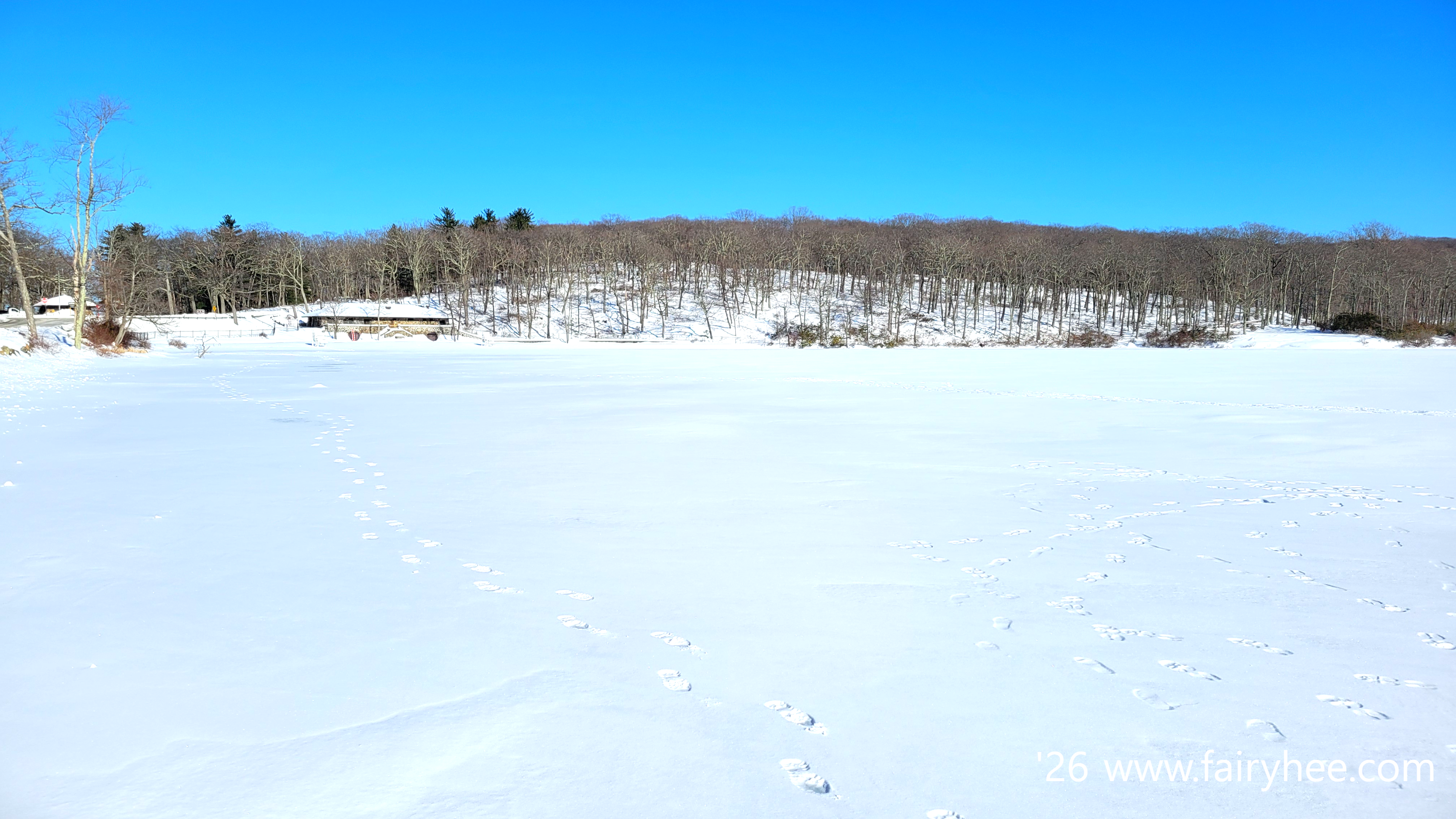 호수로 가는 길이 치워져있고 펜스가 열린 걸 보니 호수를 걸어도 될만큼 얼음이 얼었나 보다.
